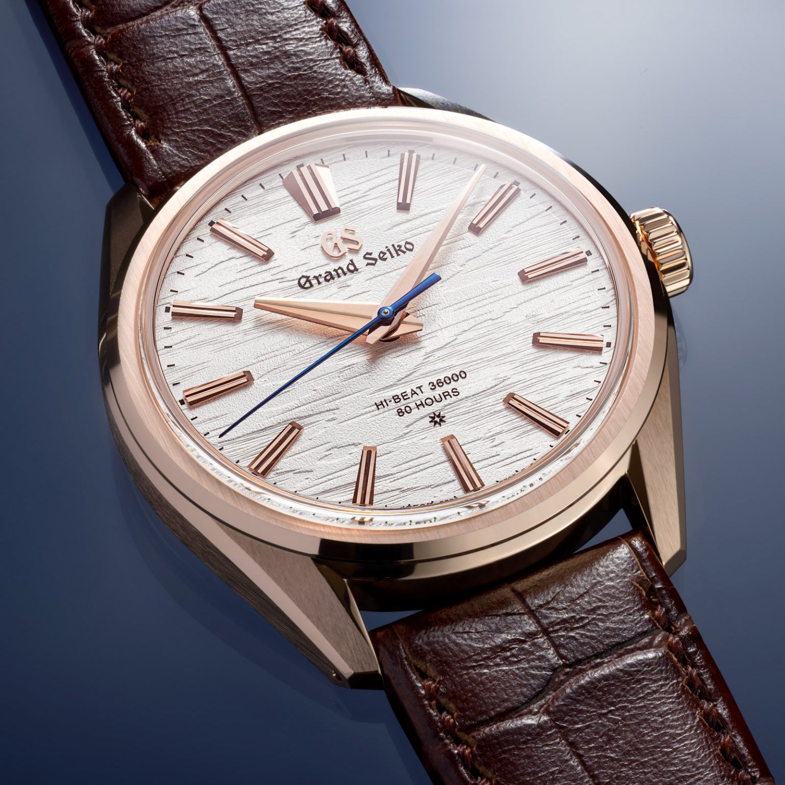 Inspired by the slender white birch trees abundant in northern Japan and flourishing near the Grand Seiko Studio Shizukuishi, both watches capture the intricate texture of the birch tree’s bark in a completely new dial pattern.