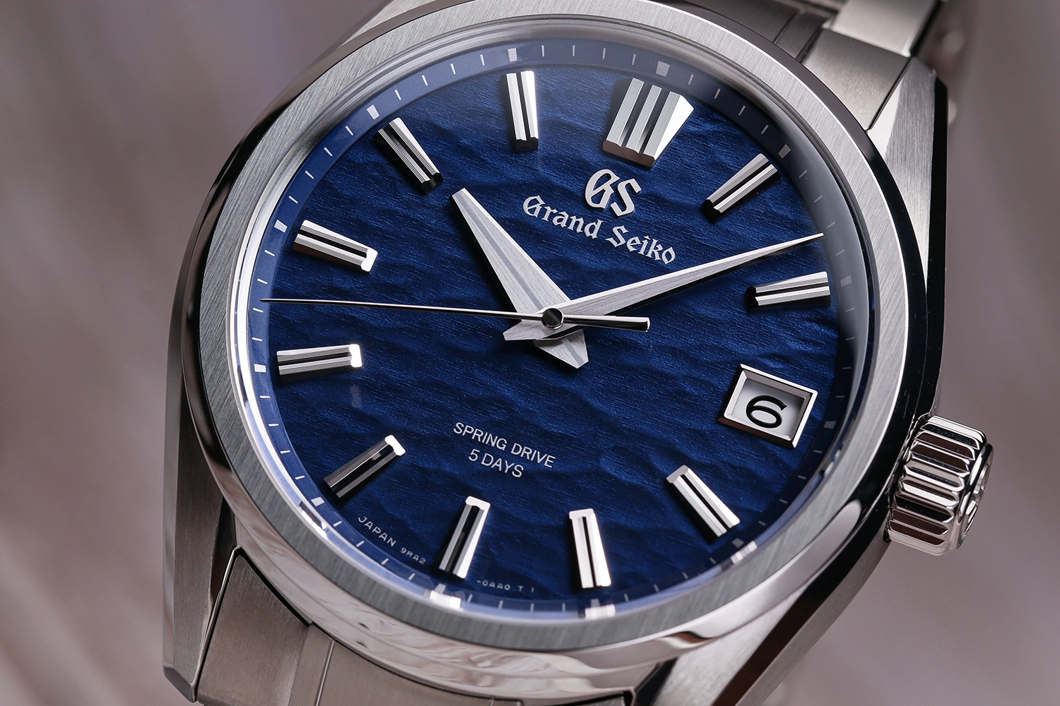 The texture of the finish reflects the natural beauty of Shinshu, the region where all Spring Drive watches are crafted. The bridge line and the edges of the screw holes are diamond cut to reflect the light from any angle, and this is all visible through a sapphire case back. Here the wearer can also find the power reserve indicator, which has been moved off the dial entirely and is one of the defining features of the Calibre 9RA2.