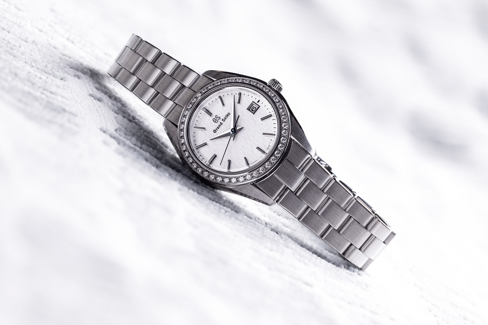 Grand Seiko presents two new “snowflake” watches: references SBGX355 and STGF385. The former features a mid-sized case rendered in High-Intensity Titanium, and the latter is a stainless steel ladies’ model adorned with diamonds.